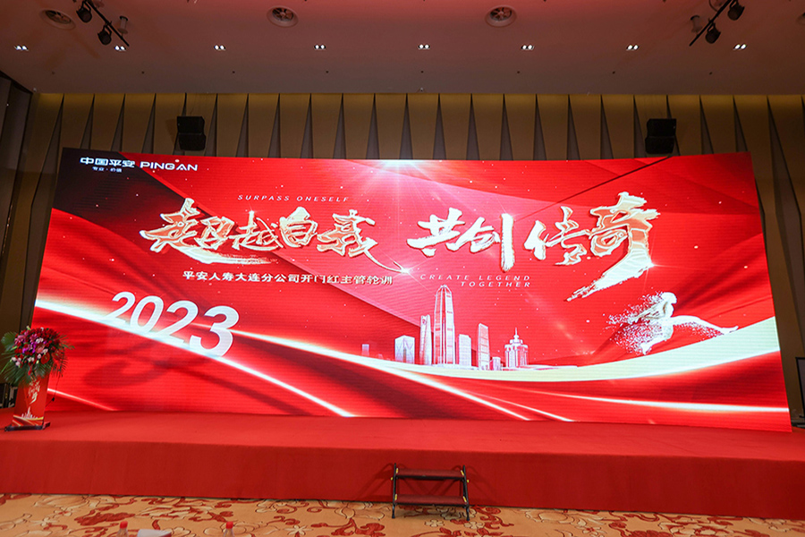 ? ? ? ??②主持人暖場,領(lǐng)導(dǎo)發(fā)言致辭,大屏幕播放公司本年度成就。