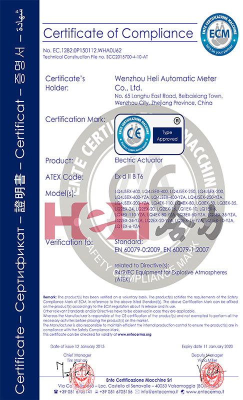 熱烈祝賀合力 LQ系列防爆執行機構獲得證書